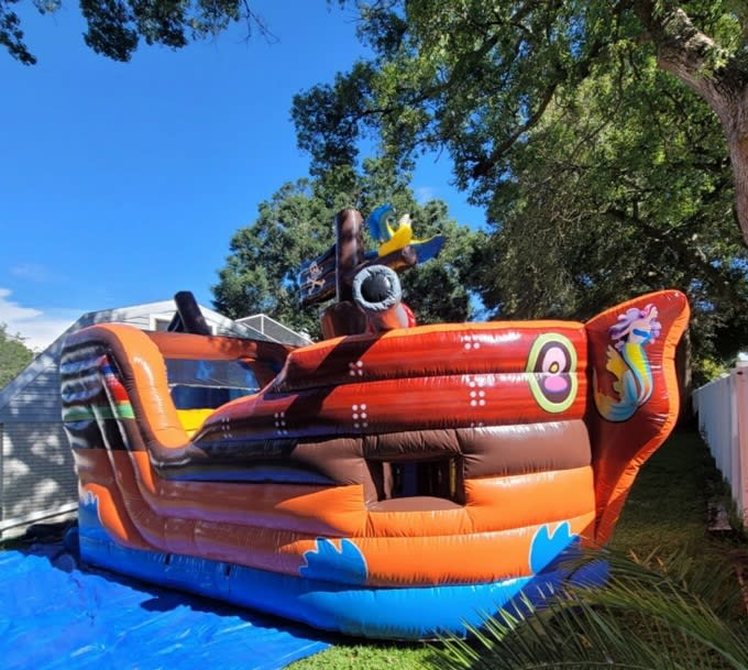 Don't miss out on the opportunity to bring the excitement of a pirate ship to your next event. Contact us today to book the 19×15×14 Pirate Ship Bounce House and Slide Combo and make your party an unforgettable experience!